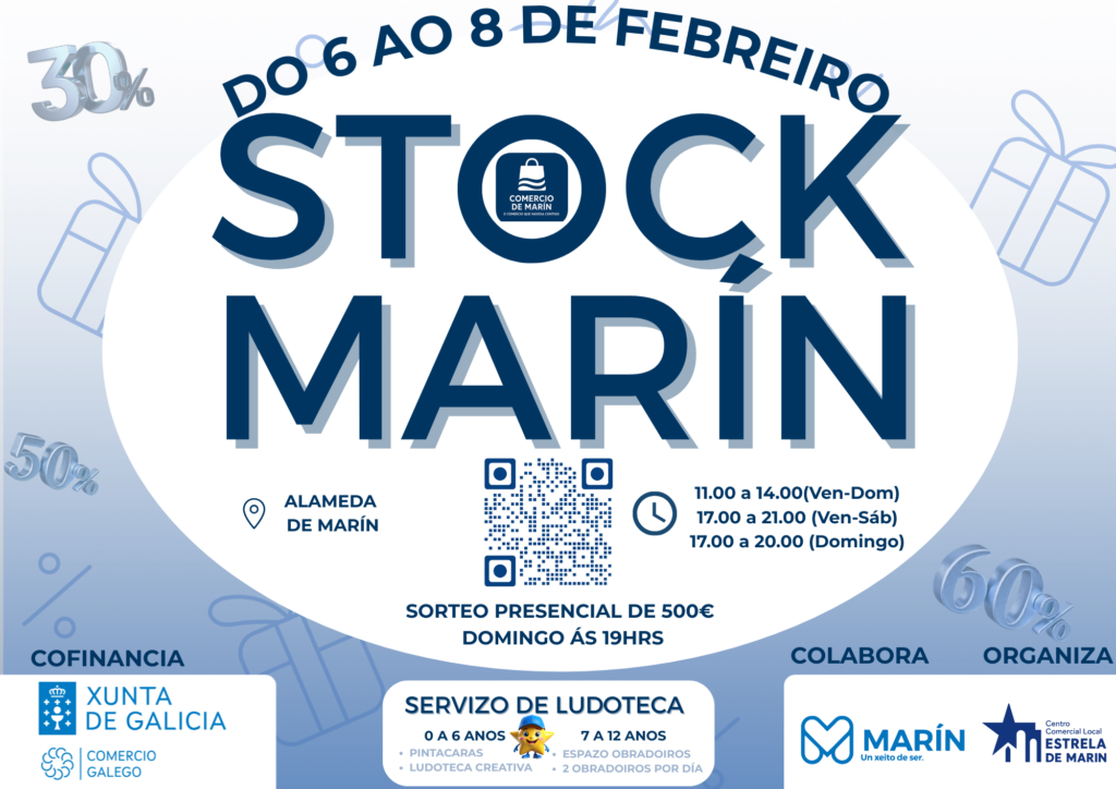 A IX Edición da feira de oportunidades «Stock Marín», celebrarase do 6 ao 8 de febreiro, na Alameda “Rosalía de Castro” de Marín, aproveitando unha das datas, nas que os establecementos comerciais, Continuar lendo →